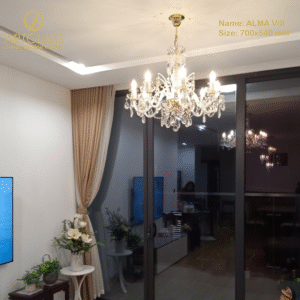 Đèn chùm pha lê phòng khách ANDULA XII SHORT – ARMS 288 CE tựa như một chiếc vương miện tinh xảo và đẳng cấp, với những đường nét thiết kế cầu kỳ cũng như sự kết hợp hoàn mỹ của những dải pha lê mềm mại là điểm nhấn cuốn hút mọi ánh nhìn.