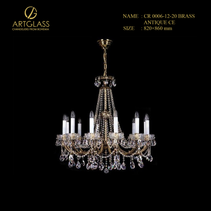 Đèn chùm pha lê CR 0006/12/20 BRASS ANTIQUE CE có kích thước lớn, đường kính 820 mm, chiều cao 860 mm. Sản phẩm phù hợp lắp đặt cho những không gian rộng rãi, sang trọng như phòng khách, phòng ăn, sảnh khách sạn, biệt thự,…đây sẽ là một sản phẩm chinh phục bất kỳ vị khách nào khi bắt gặp.