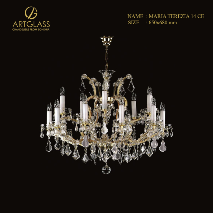 Lấy cảm hứng từ phong cách cổ điển Châu Âu, MARIA TEREZIA 14 CE là hiện thân của sự sang trọng và đẳng cấp. Với hàng chục viên pha lê Tiệp cao cấp được cắt gọt tỉ mỉ, lấp lánh dưới ánh sáng, tạo nên một bản giao hưởng ánh sáng huyền ảo và lung linh. Ngoài ra việc sử dụng đèn chùm pha lê trong nhà được cho là sẽ mang đến năng lượng tích cực, thu hút vượng khí và gia tăng tài lộc cho gia chủ.