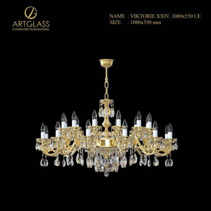 Đèn chùm VIKTORIE XXIV 1080×550 POLISHED CE kích thước khá lớn với đường kính 1080mm và chiều cao 550mm phù hợp với các không gian cao cấp như: