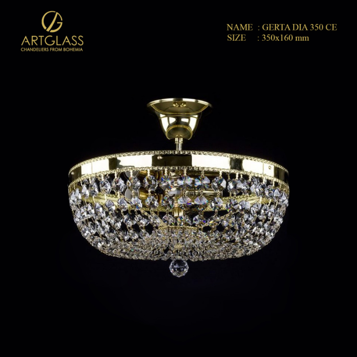 Được chế tác từ đồng thau mạ vàng và pha lê cao cấp, GERTA DIA 350 CE sở hữu độ bền cao cùng vẻ ngoài lộng lẫy, tạo điểm nhấn cho căn phòng. Đồng thau mạ vàng giúp tăng thêm tính thẩm mỹ cho sản phẩm, đồng thời cũng giúp sản phẩm chống lại quá trình oxy hóa, giữ vẻ đẹp bền lâu. Các viên pha lê được lựa chọn kỹ lưỡng, cắt giác tinh xảo qua đó đạt được độ trong suốt và khả năng tán sắc hoàn mỹ. Chúng giúp ánh sáng đèn thêm thu hút và rõ nét hơn.