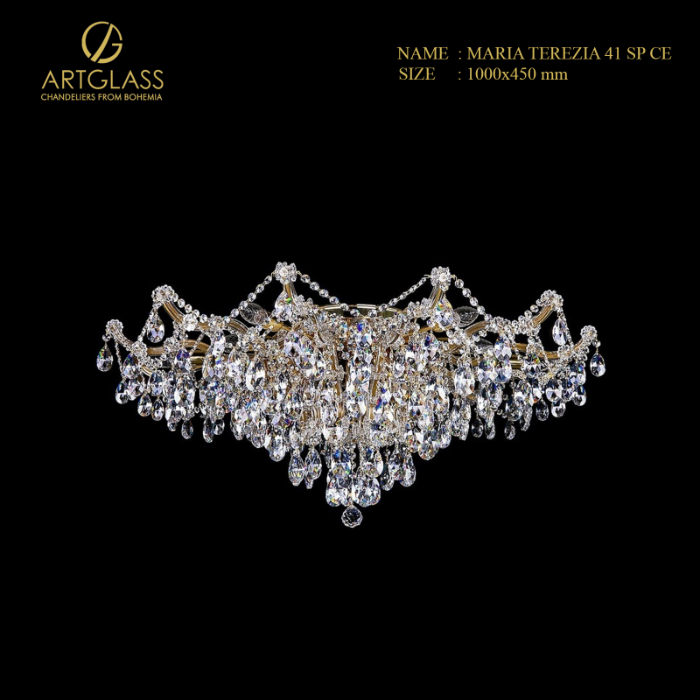 Đèn ốp trần pha lê MARIA TEREZIA 41 CE được lấy cảm hứng từ phong cách thiết kế hoàng gia, mang đậm nét cổ điển nhưng vẫn giữ được sự hiện đại và tinh tế. Đèn sở hữu kiểu dáng sang trọng với những chi tiết cầu kỳ, gợi nhớ đến những cung điện tráng lệ của châu Âu thời kỳ Baroque. Điểm nhấn của MARIA TEREZIA 41 CE chính là sự hòa quyện hoàn hảo giữa các chi tiết kim loại mạ vàng và những viên pha lê lấp lánh, tạo nên một tác phẩm nghệ thuật đỉnh cao, tôn vinh không gian sống.