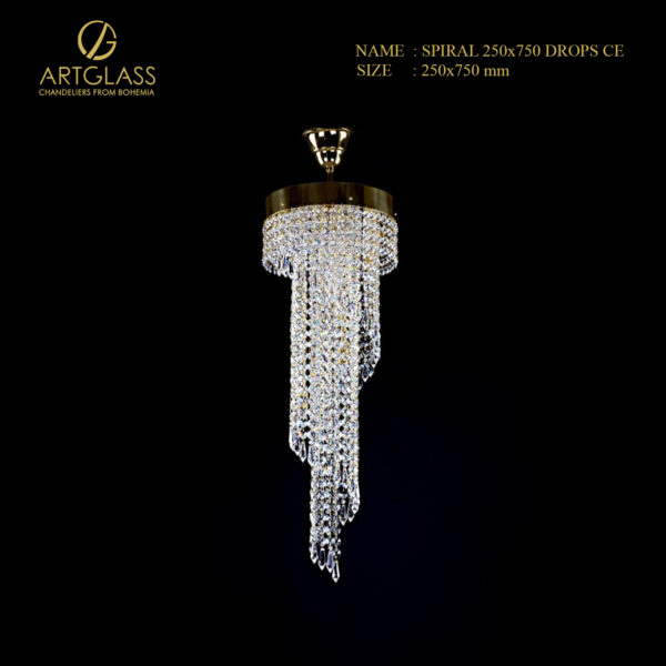 Đèn thả pha lê SPIRAL 250×750 DROPS CE sở hữu thiết kế nhẹ nhàng, vẻ đẹp mềm mại với những chuỗi pha lê thả rủ xuống phía dưới như những giọt nước đang rơi. Sản phẩm là sự kết hợp hài hòa giữa sự đẳng cấp, tính nghệ thuật và các hiệu ứng ánh sáng lấp lánh, tô điểm thêm cho không gian ngôi nhà. Đây sẽ là mẫu đèn phù hợp với các không gian yêu cầu sự tinh tế, hiện đại.