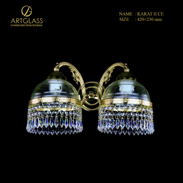 Mang phong cách tân cổ điển, đèn tường KARAT II POLISHED CE là sự kết hợp hài hòa giữa vẻ đẹp tinh tế và sự đẳng cấp. Thiết kế đèn gồm 2 tay đèn uốn cong được trang trí tạo điểm nhấn, phần chụp đèn pha lê trong suốt với vô số chuỗi pha lê bao xung quanh. Sản phẩm sẽ là là lựa chọn hoàn hảo dành cho các không gian yêu cầu sự sang trọng, quý phái.