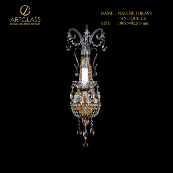 Đèn tường pha lê NADINE I BRASS ANTIQUE WL CE sở hữu phong cách thiết kế châu Âu cổ điển, kết hợp hoàn hảo giữa các chi tiết trang trí tinh xảo và pha lê lấp lánh. Từng chi tiết của chiếc đèn được nghệ nhân chế tác trau chuốt tỉ mỉ, tạo bố cục hoàn mỹ không có điểm chết. Chính bởi vậy, chiếc đèn này luôn sở hữu vẻ đẹp đồng nhất dù bạn nhìn từ bất cứ góc độ nào.